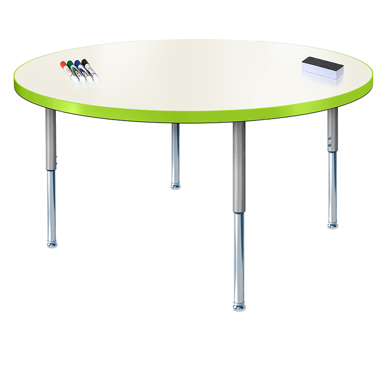 The Modern Classic collection is a versatile and stylish option for classrooms of all sizes. The collection features a timeless aesthetic, durability, and functionality. The adjustable nylon swivel glides and durable chrome and powder-coat finish make the desks and tables easy to move and resistant to wear and tear. The high-pressure laminate (HPL) work surface is also durable and easy to clean. The unique shapes of the desks and tables allow for versatile configurations, making them a good fit for any classroom layout. The vinyl edge is available in a range of popular colors, so you can choose a color that matches your classroom décor. Additionally, you can select leg colors from a sleek black or platinum option.